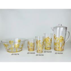 Acrylic Plastic Gold Palm Tree Tumblers / Pitcher / Bowl